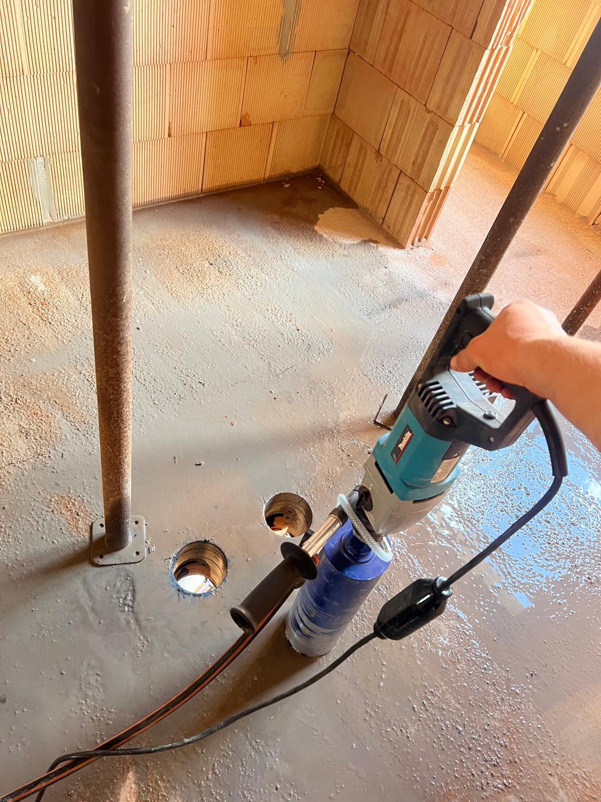 Plaatsen diamandboringen voor: afvoeren, ventilatie en doorvoer elektriciteitskabels.